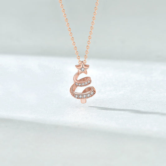Lucky Harmony Deer & Tree Silver Necklace with Zirconia