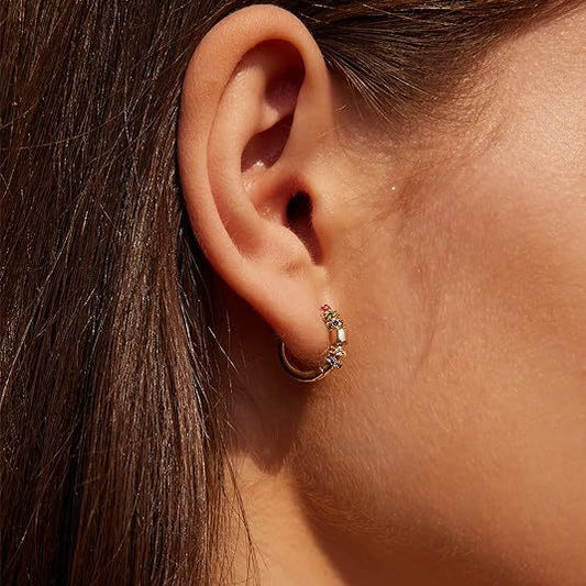 Lucky Aura Gold-Plated Silver Earrings with Colorful Zirconia